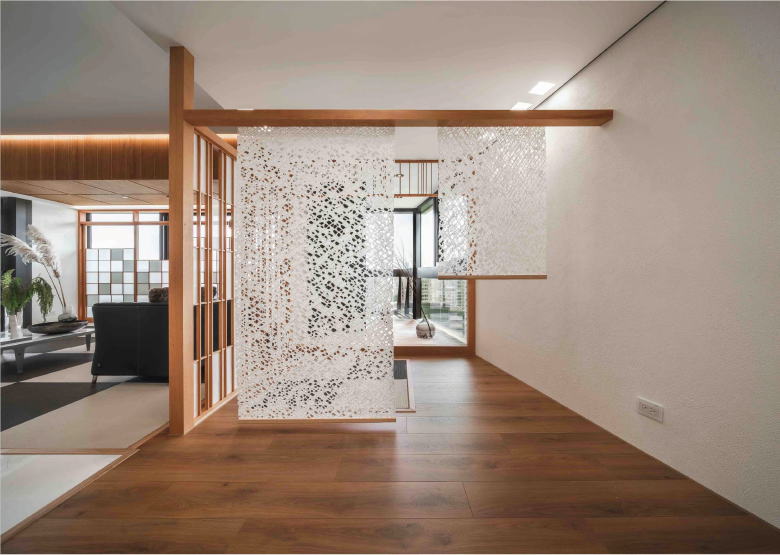 茶室とエントランスの境界に和紙を使用。